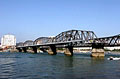 ¡¡¡¡ÏÂÇÅÊÇ1909Ä꣨ÇåÐûͳԪÄ꣩5Ô¶¯¹¤£¬1911Ä꣨ÐûͳÈýÄ꣩10Ô¿¢¹¤¡£Óɵ±Ê±ÈÕ±¾×¤³¯ÏÊ×ܶ½¸®ÌúµÀ¾ÖÔÚ½«°²·îÏߣ¨µ¤¶«¡ªÉòÑô£©ÁÙʱÇá±ãÕ­¹ì¾üÓÃÌú·¸Ä³ÉÓÀ¾ÃÐÔÉÌÒµÌú·µÄͬʱ£¬ÔÚѼÂ̽­ÉÏËù½¨µÄµÚÒ»×ùÌú·ÇÅ¡£Õû¸ö¹¤³ÌʹÒÛÖг¯Á½¹úÀ͹¤51ÍòÈ˴Σ¬Çų¤941.83Ã×£¬¿í11Ã×£¬12¿×£¬ÇúÏÒʽϹ¹¸ÖÁº£¬ÆäÖÐÒÔ9ºÅÇŶÕΪÖáÉϼÜÐýʽ¸ÖÁº£¬Ã¿ÈÕ¶¨Ê±¿ª·Å£¬¹©¹ýÍù´óÐÍ´¬Ö»Í¨¹ýʱʹÓ㬸ÃÇŽ¨³Éºó£¬°²·îÏßͬ³¯ÏÊÌú·½Ó¹ì£¬ÐγÉÁ˹ᴩÖйú¶«±±Ó볯Ïʰ뵺µÄÒ»ÌõÔËÊäÏß¡£1943ÄêÉÏÇŽ¨³Éºó¸ÃÇŸÄΪ¹«Â·ÇÅ£¬ÇÅÖмäÊÇ´ó³µµÀ£¬Á½±ßÊÇÈËÐеÀ¡£×ó²àΪȥ³¯ÏʵÄͨµÀ£¬ÓÒ²àÊÇÀ´ÖйúµÄͨµÀ¡£